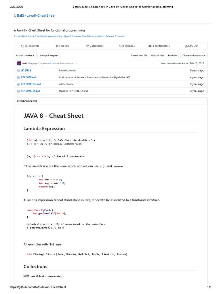 GitHub - BafS/Java8-CheatSheet: A Java 8+ Cheat Sheet for functional ...