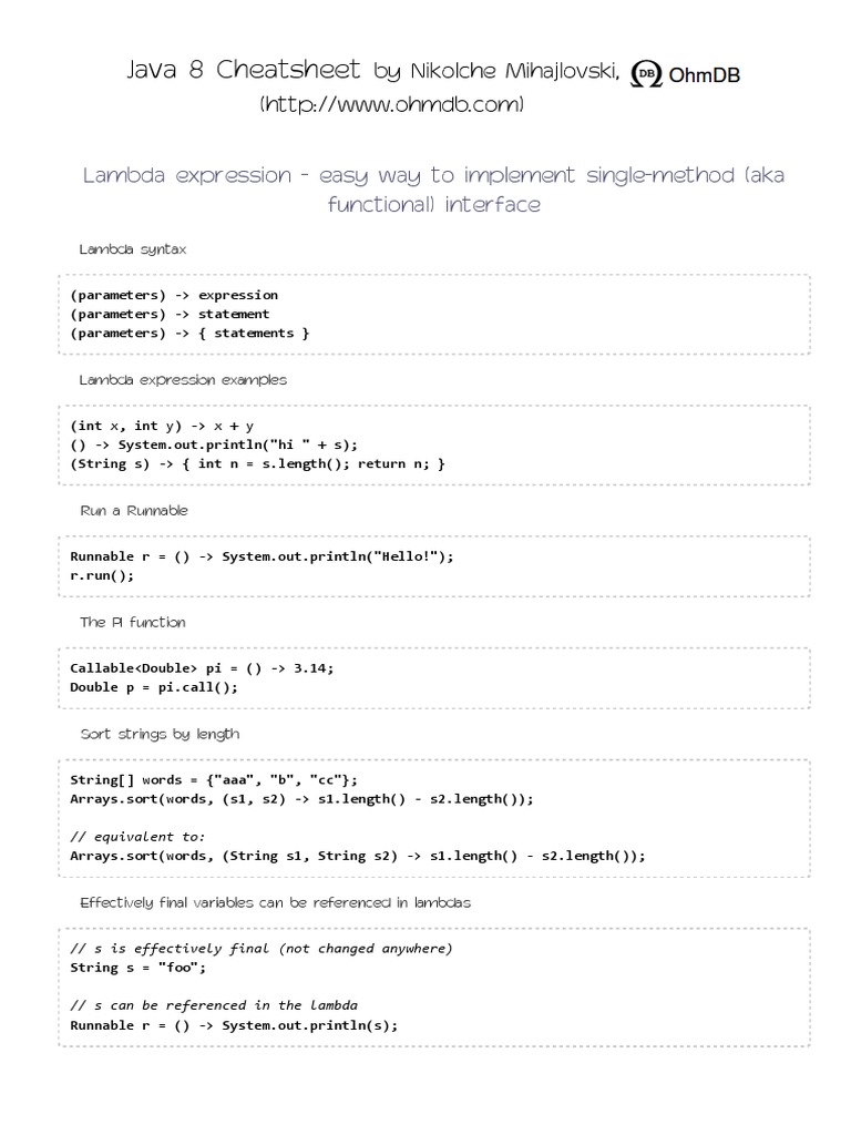 Java 8 Features Cheat Sheet | PDF | String (Computer Science ...