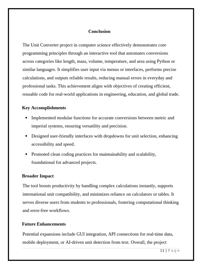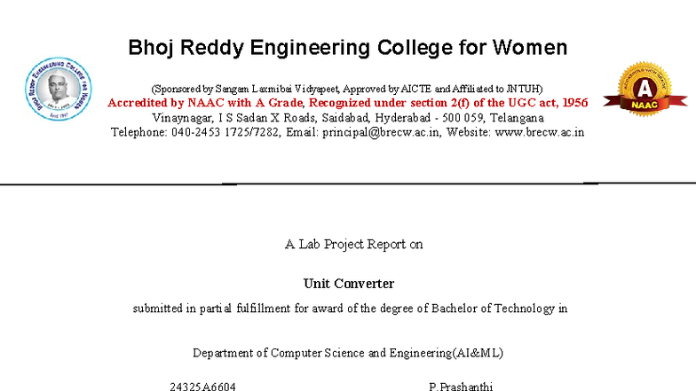 Unit Converter Project Report for B.Tech in CSE (24325A6604) - Studocu