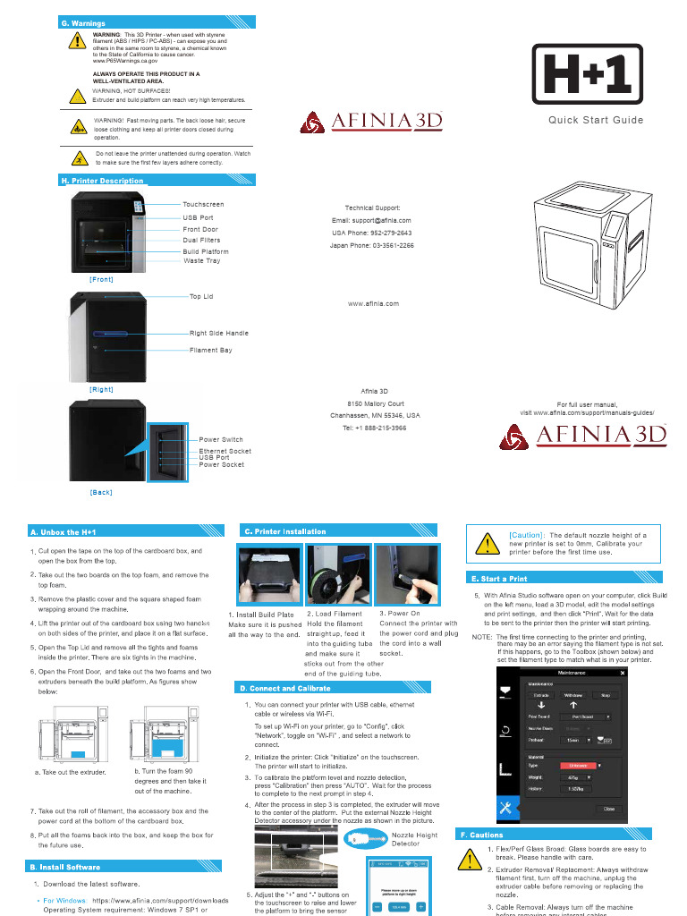 Afinia Hplus1 Quick Start Guide1 | PDF