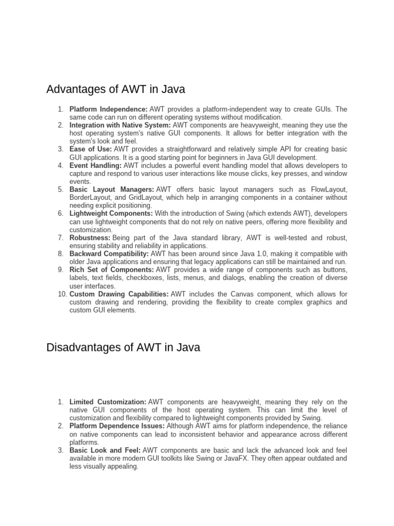 Advantages of AWT in Java | PDF | Computer Programming | Computer Libraries