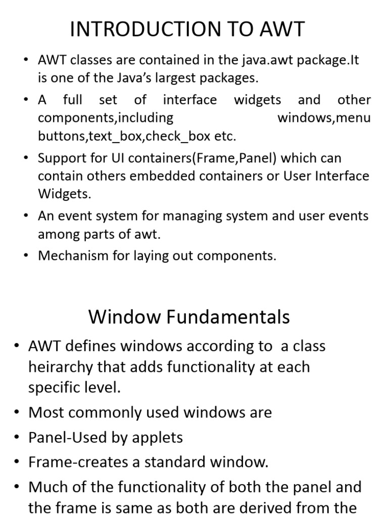 Java AWT Is An API That Contains Large Number of Classes and Methods To ...