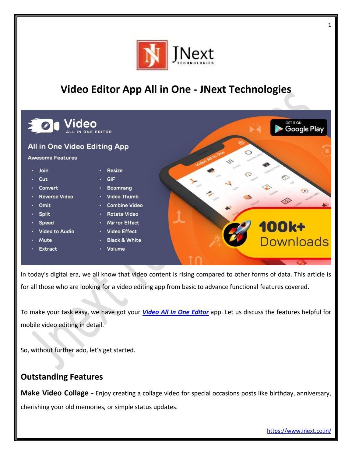 Best Things of Video All in one editor by JNext Services Pvt. Ltd. - Issuu