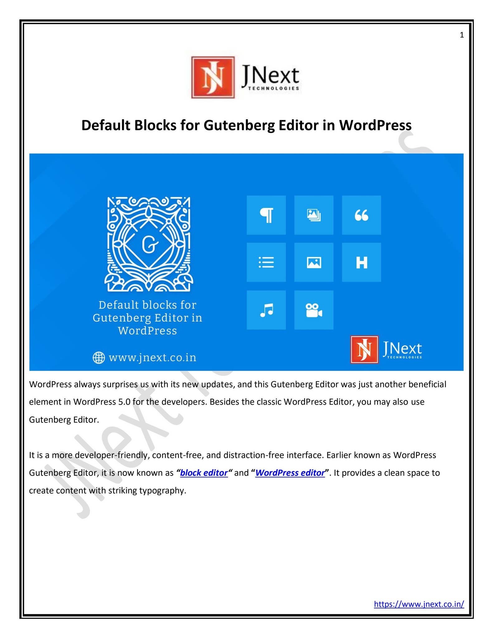 Default Blocks For Gutenberg Editor In WordPress by JNext Services Pvt ...