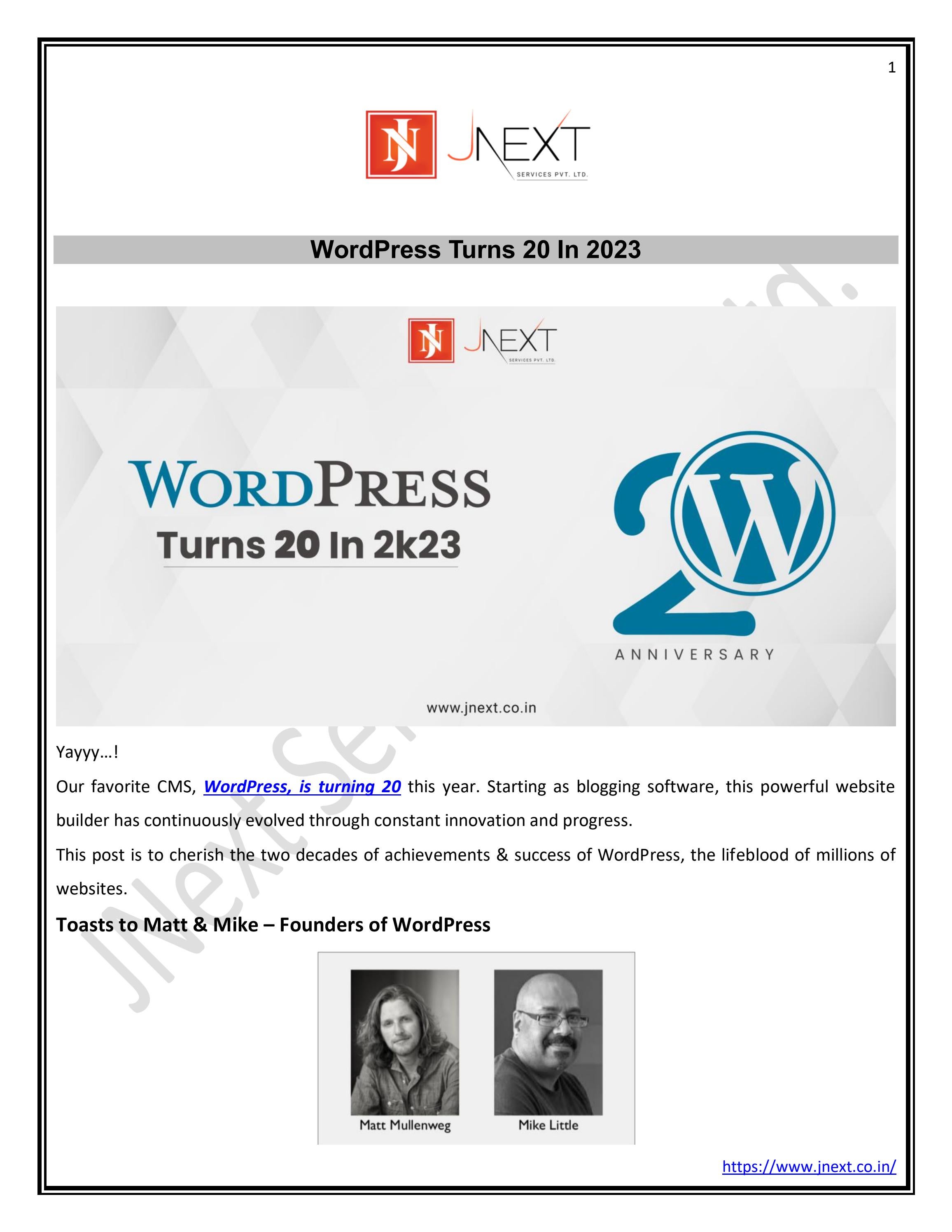 About WordPress Turns 20 in 2023 by JNext Services Pvt. Ltd. - Issuu