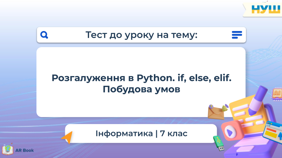 Тест до уроку на тему: "Розгалуження в Python. if, else, elif. Побудова ...