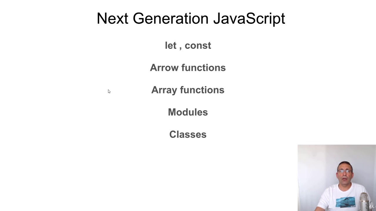 Based on this image's title: “next gen javascript 01 introduction - YouTube”