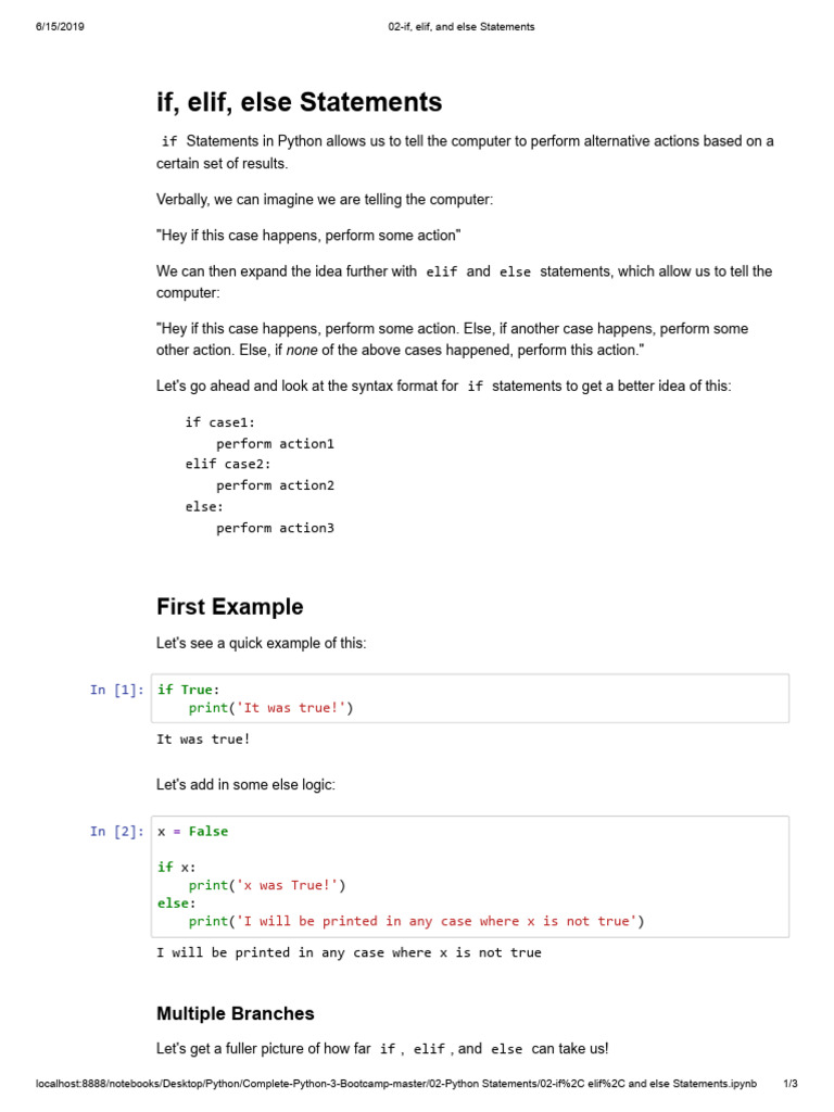 02-If, Elif, and Else Statements | PDF | Python (Programming Language ...