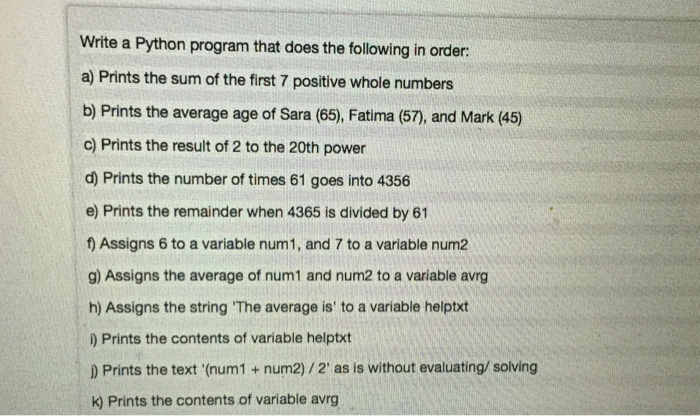 6) Write the Python program to solve the following | Chegg.com