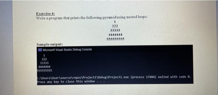 Exercise 4: Write a program that prints the following | Chegg.com