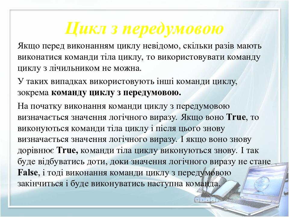 Презентація уроку "Цикл з передумовою"