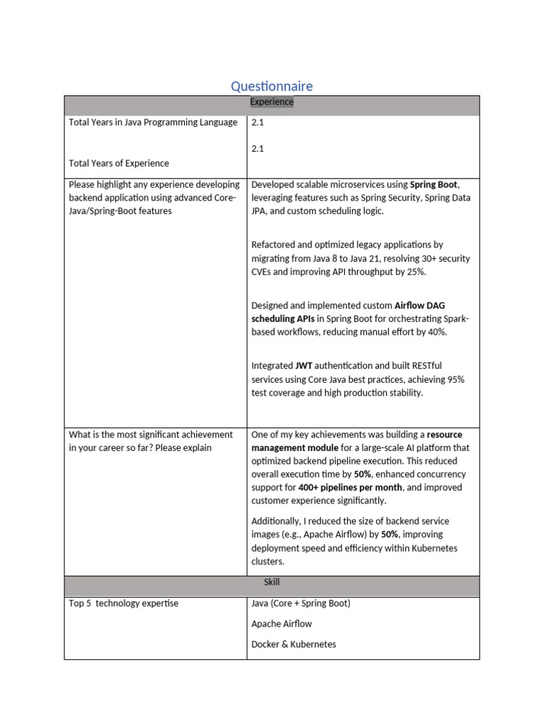 Auroshish Questionnaire | PDF | Java (Programming Language) | Apache Spark