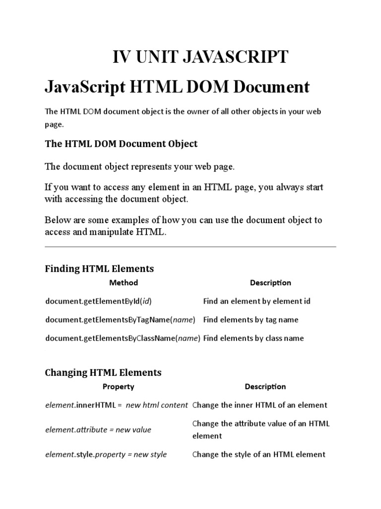 Javascript HTML Dom Elements | PDF | Html | Document Object Model