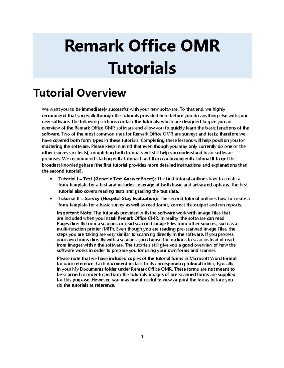 Remark Office OMR Software: Comprehensive Tutorials for Users - Studocu