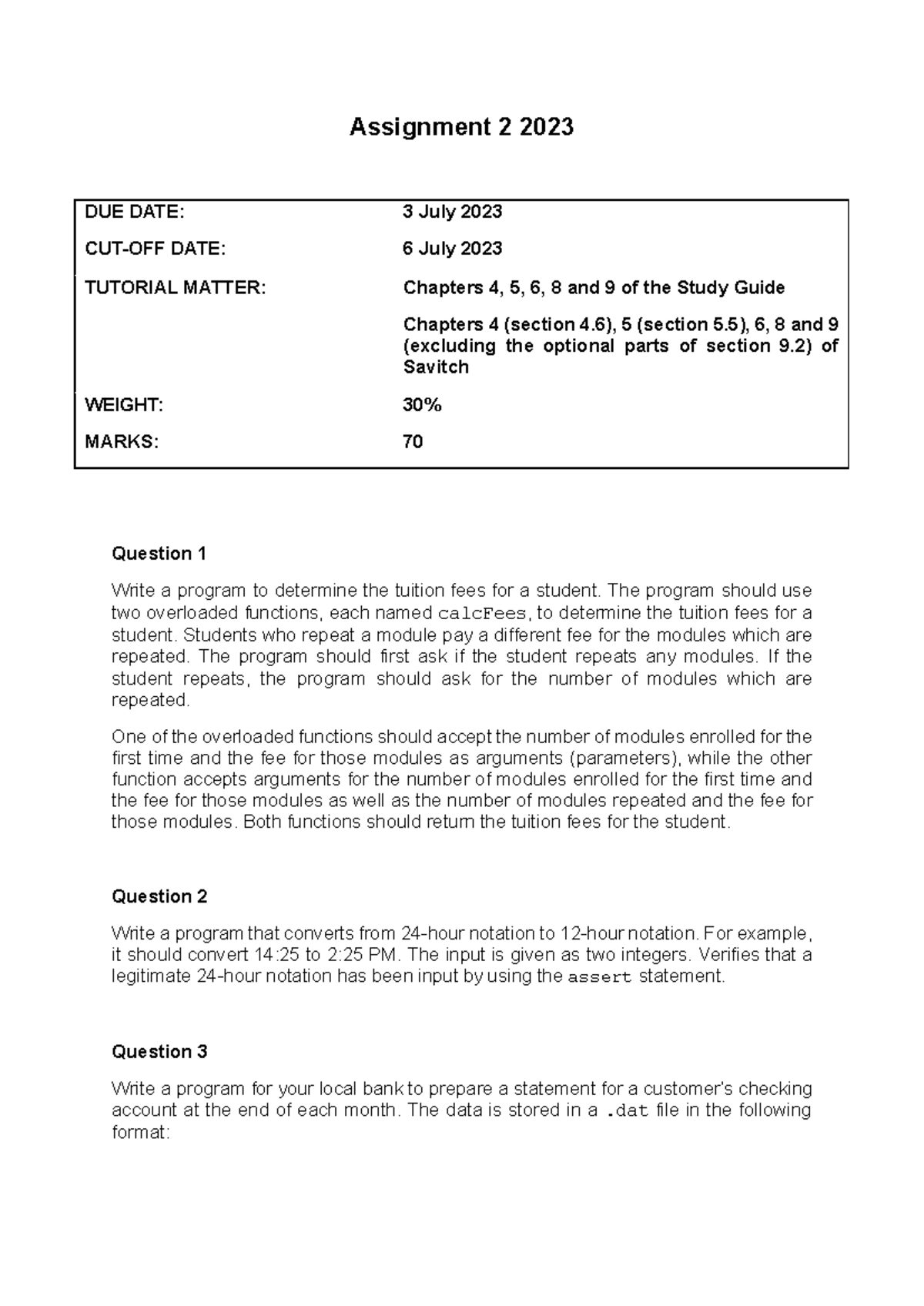 COS1512 Assignment 2 - Programming Tutorials and Tasks 2023 - Studocu