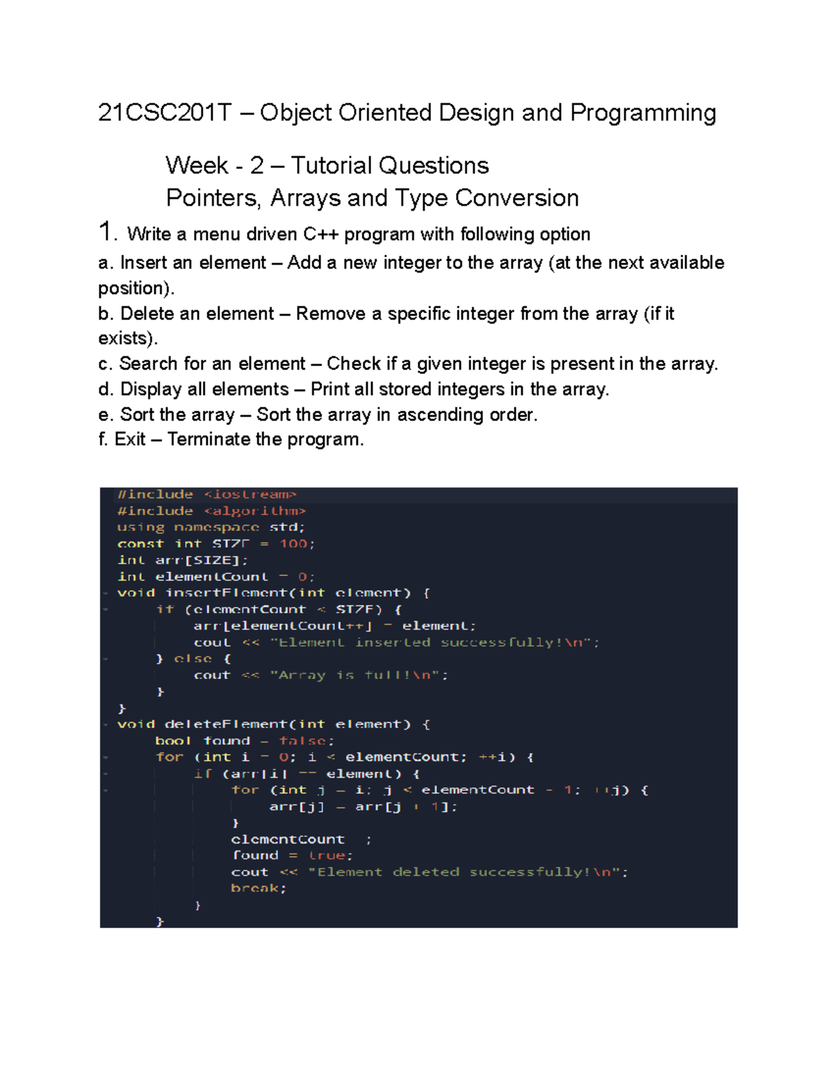 - OODP Tutorials- 21CSC201T – Object Oriented Design and Programming ...
