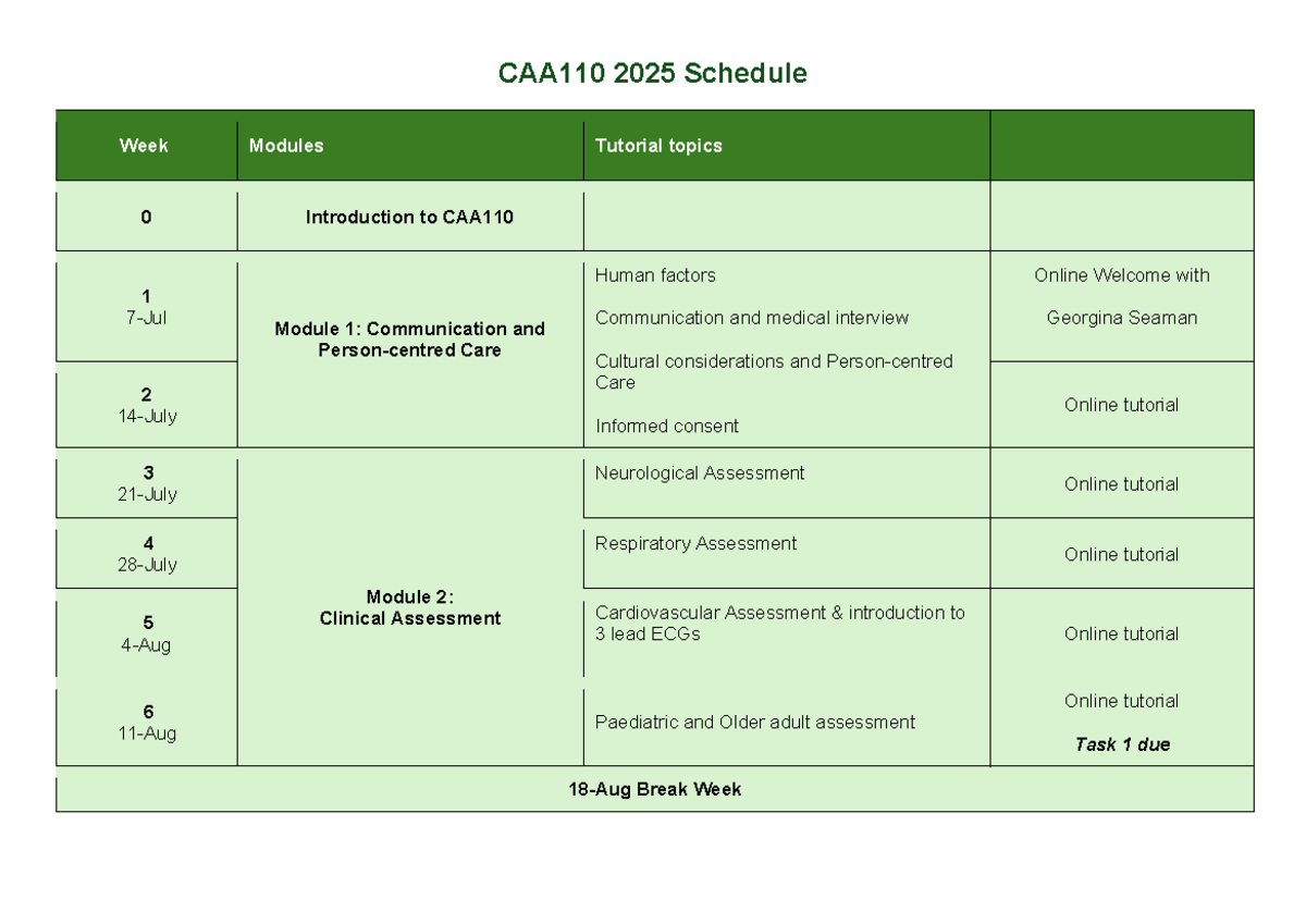 CAA110 - Sem 2 2025 Schedule: Modules & Tutorials Overview - Studocu