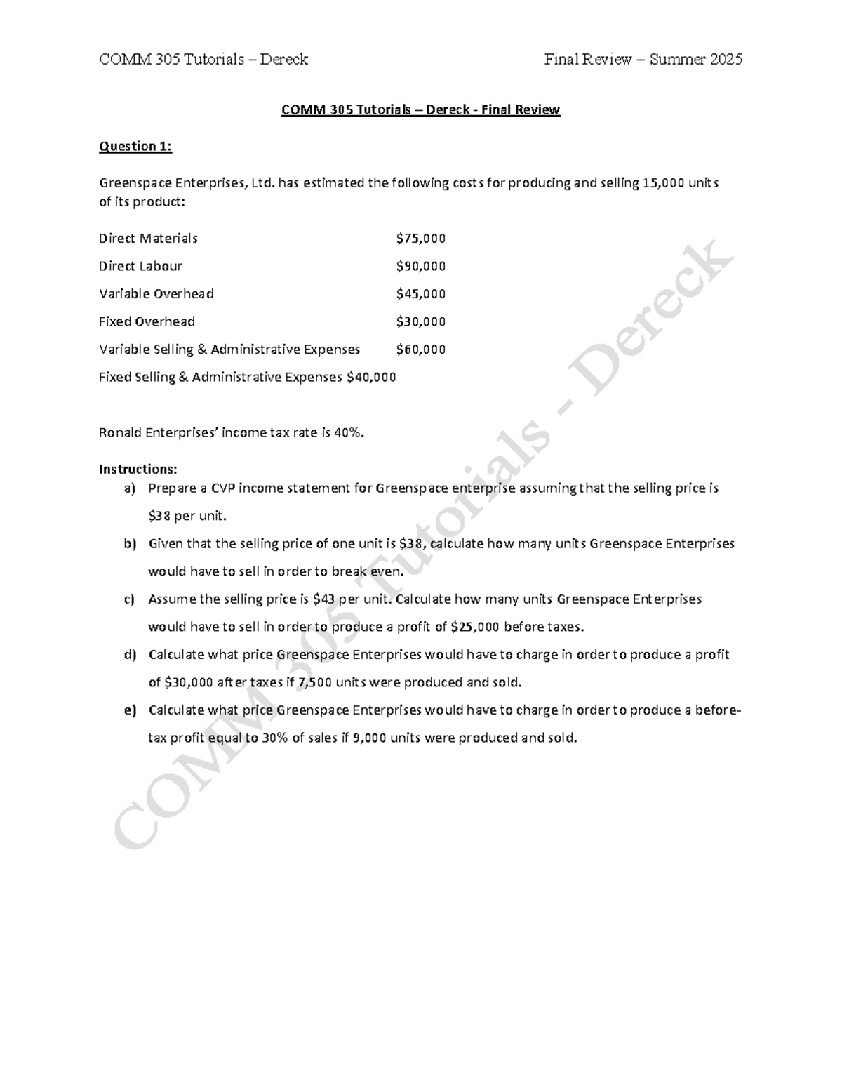 COMM 305 Tutorials Dereck Final Review Guide Summer 2025 - Studocu