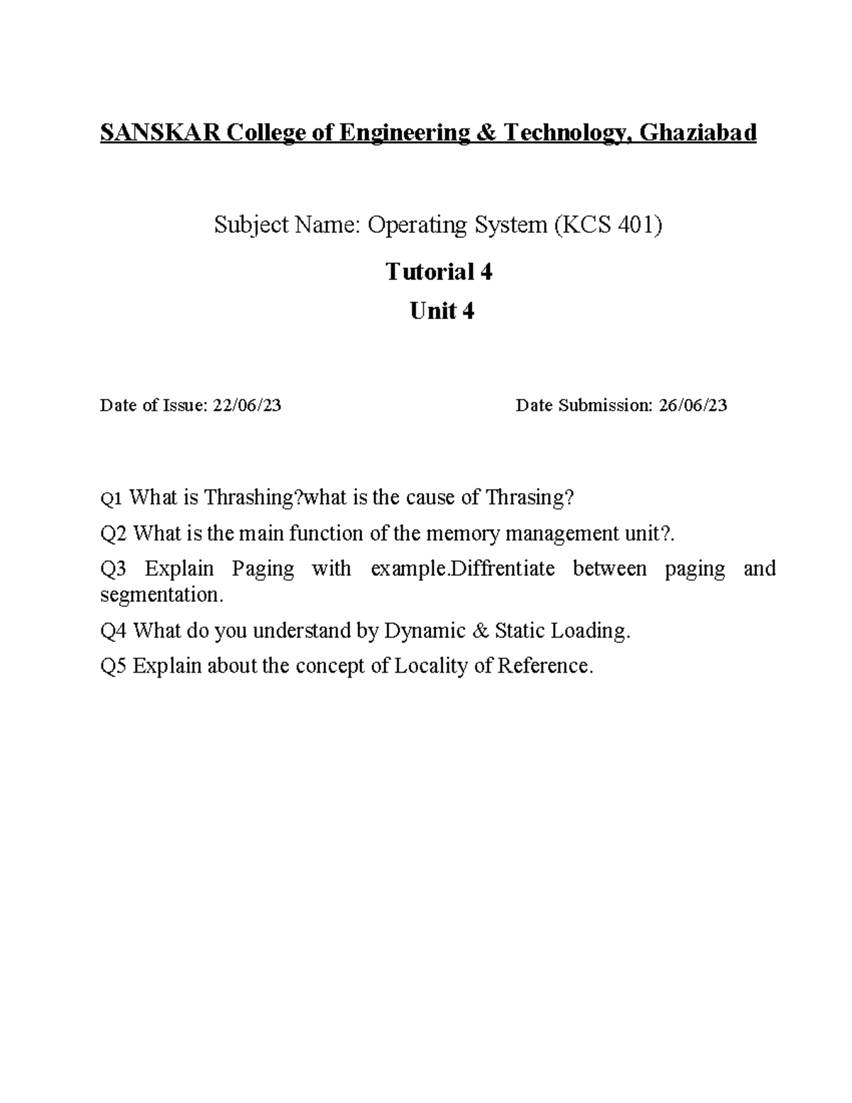 KCS 401 & KCS 101: Comprehensive Tutorials on OS & C Programming - Studocu