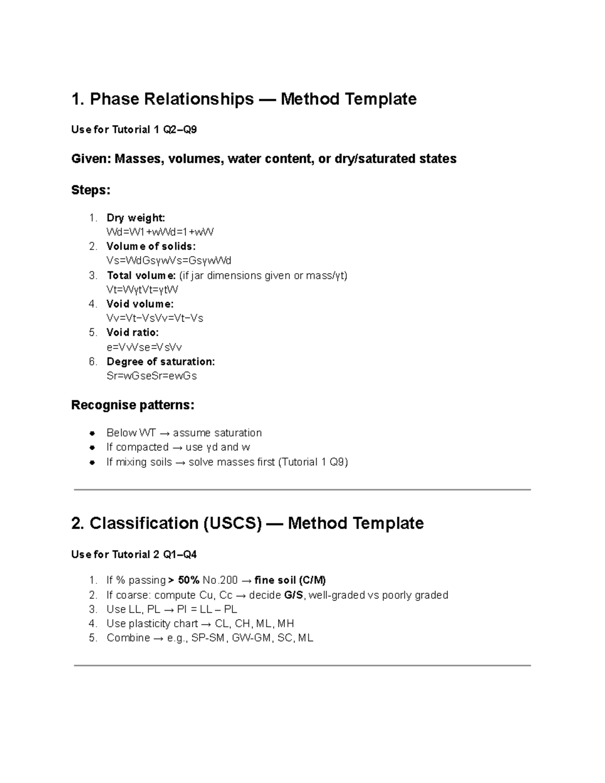 Soil Mechanics Notes: Comprehensive Equation Summary for Tutorials ...