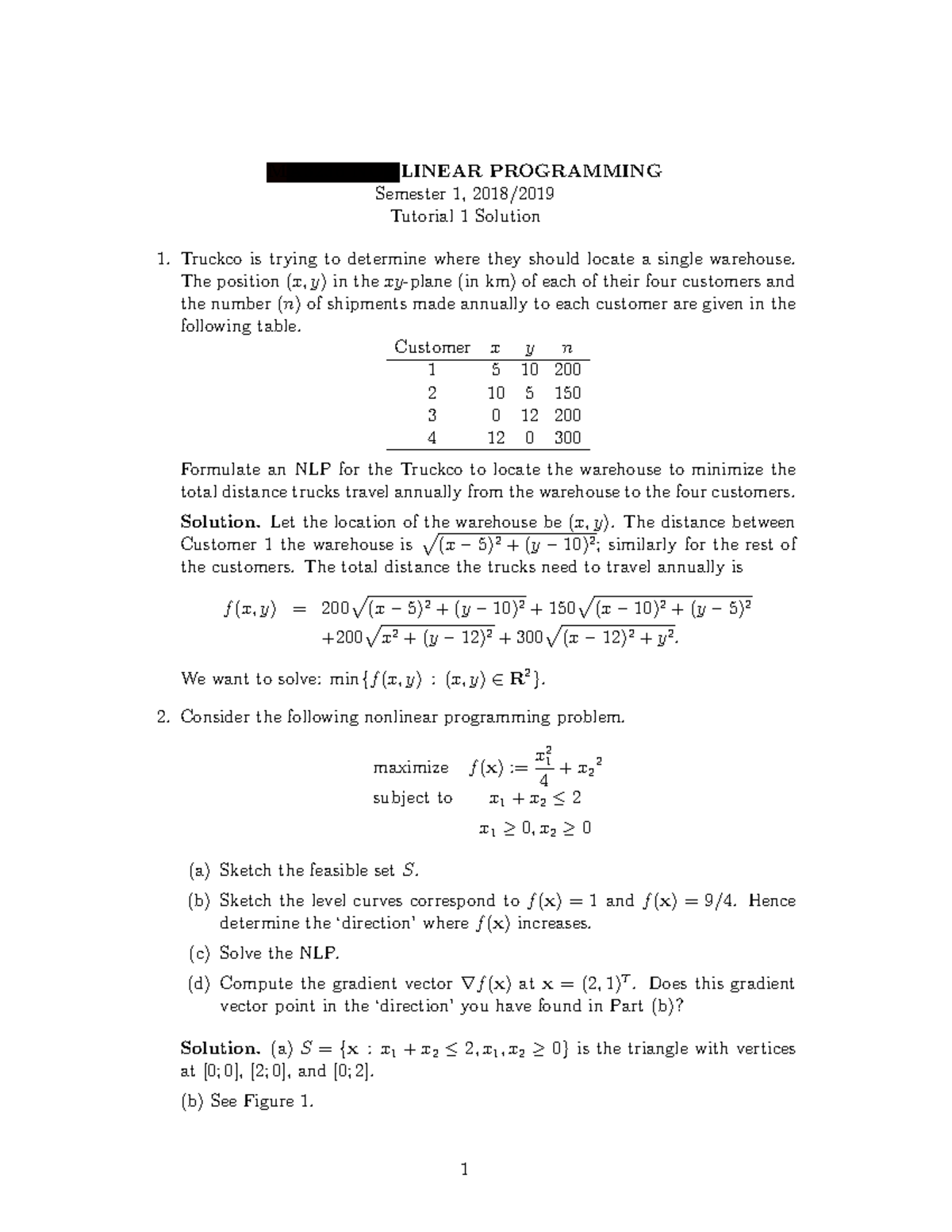 Nonlinear Programming (NLP) Solutions - MA3236 Tutorials - Studocu
