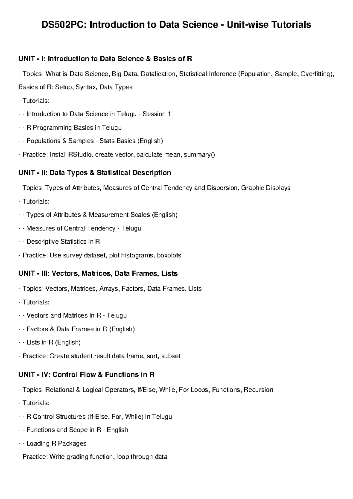 DS502PC: Data Science Tutorials Syllabus Overview - Studocu