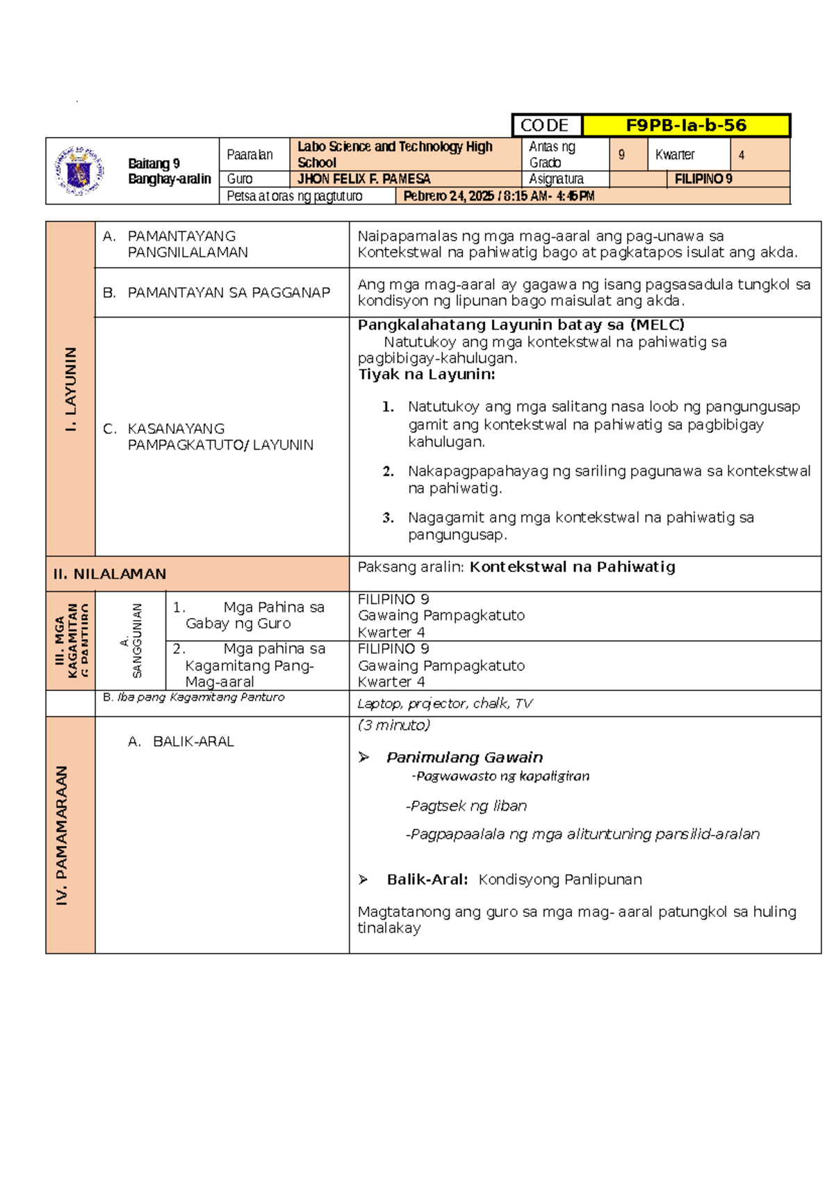 Demonstration tutorials - s CODE F9PB-Ia-b- Baitang 9 Banghay-aralin ...