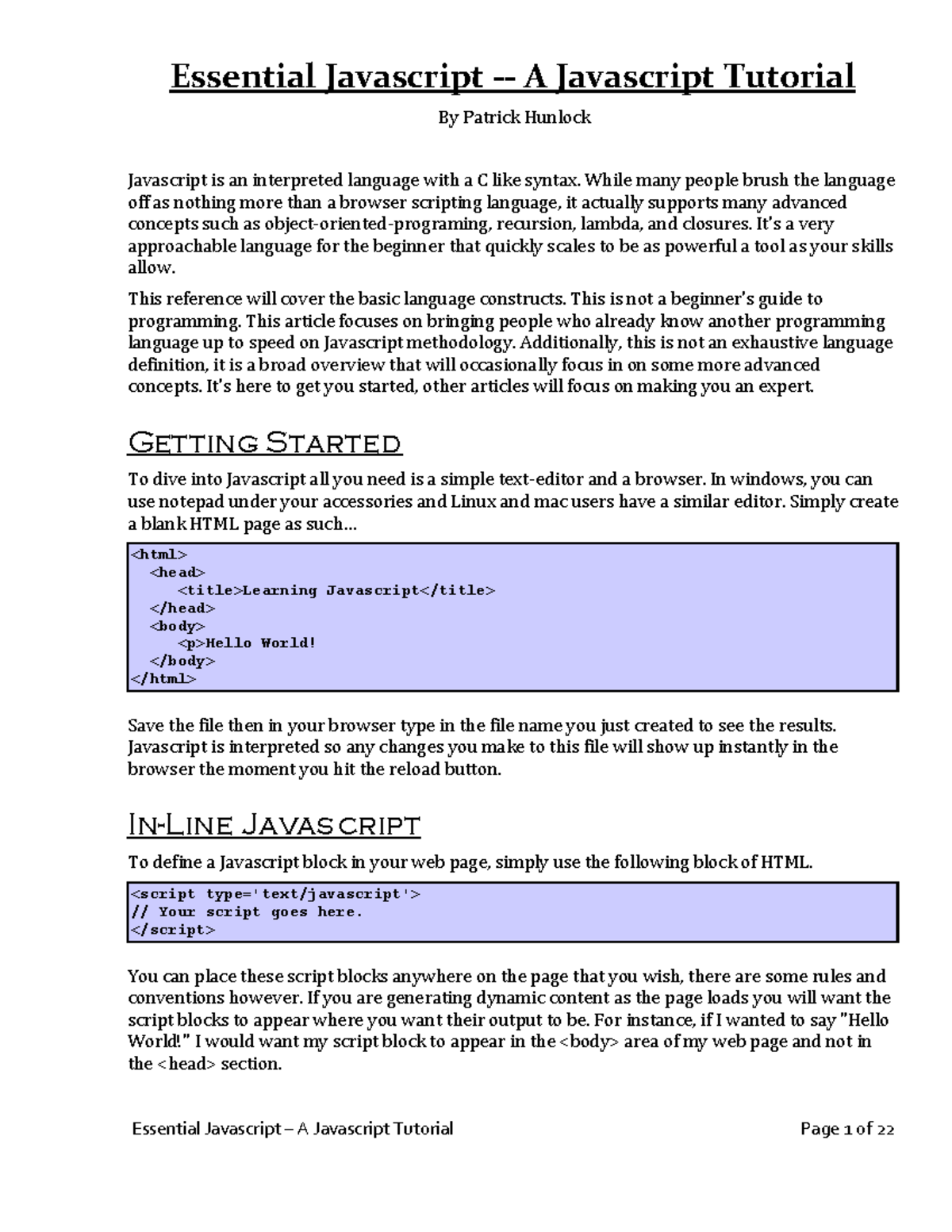 Essential JavaScript - A JavaScript Tutorial - Eloquens