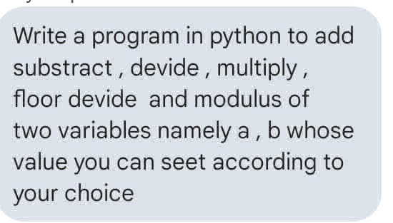 Write a program in python to add substract, | StudyX