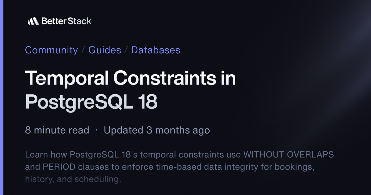 Temporal Constraints in PostgreSQL 18 | Better Stack Community