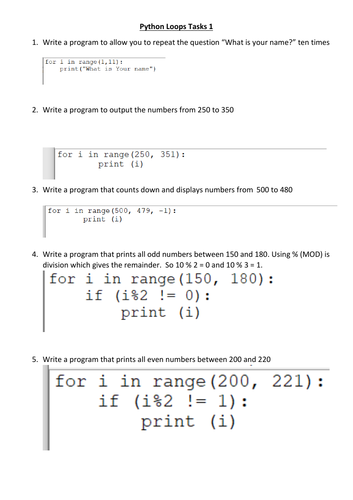 While and For Loops Python Tasks GCSE | Teaching Resources