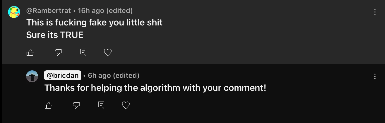 Thanks for helping the algorithm! (The pinned comment said its scripted ...