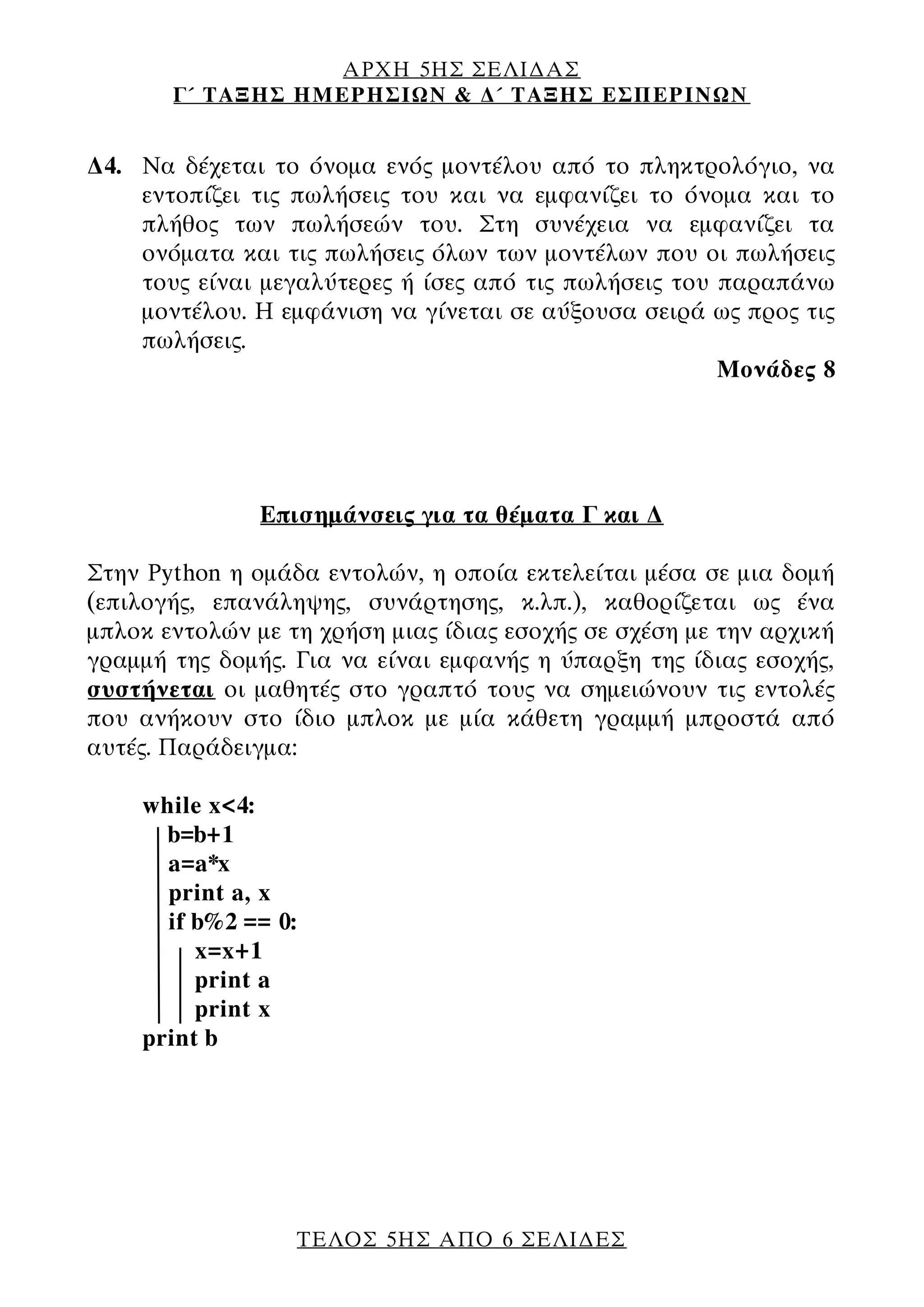 Based on this image's title: “Εισαγωγή στον Προγραμματισμό με Python για Μαθητές Γ' Πληροφορικής | PDF”