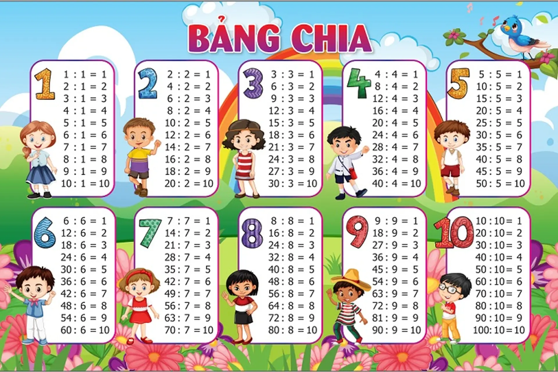 Bảng Cửu Chương - Bảng Chia từ 1 đến 10 cho bé