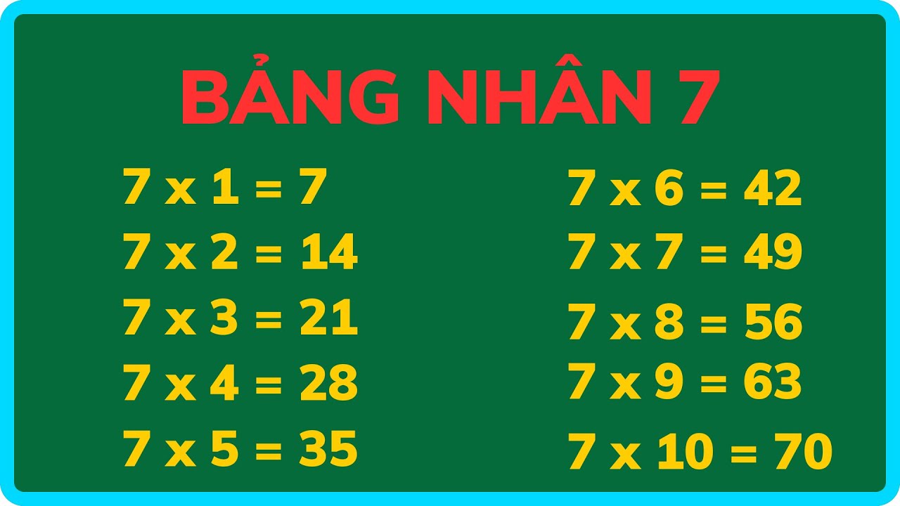 Bảng Cửu Chương 7 | bảng nhân 7 | Bảng cửu chương nhân 7 - Dâu tây tv ...