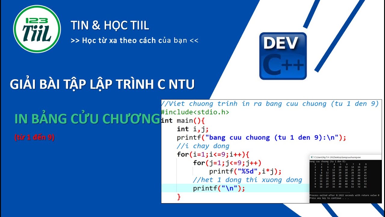 IN BẢNG CỬU CHƯƠNG - C - YouTube