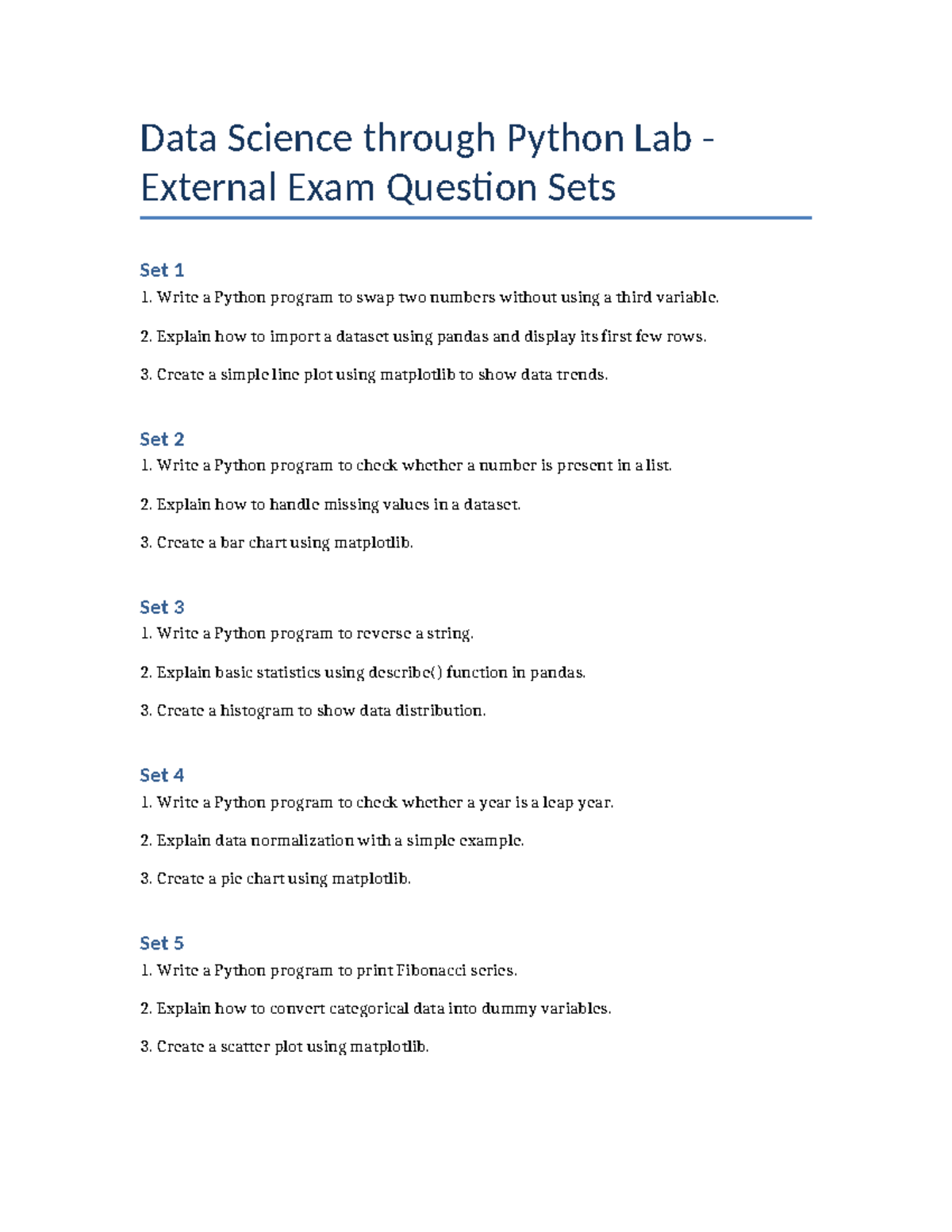 DS Python Lab External Exam Question Sets: Practice Problems - Studocu