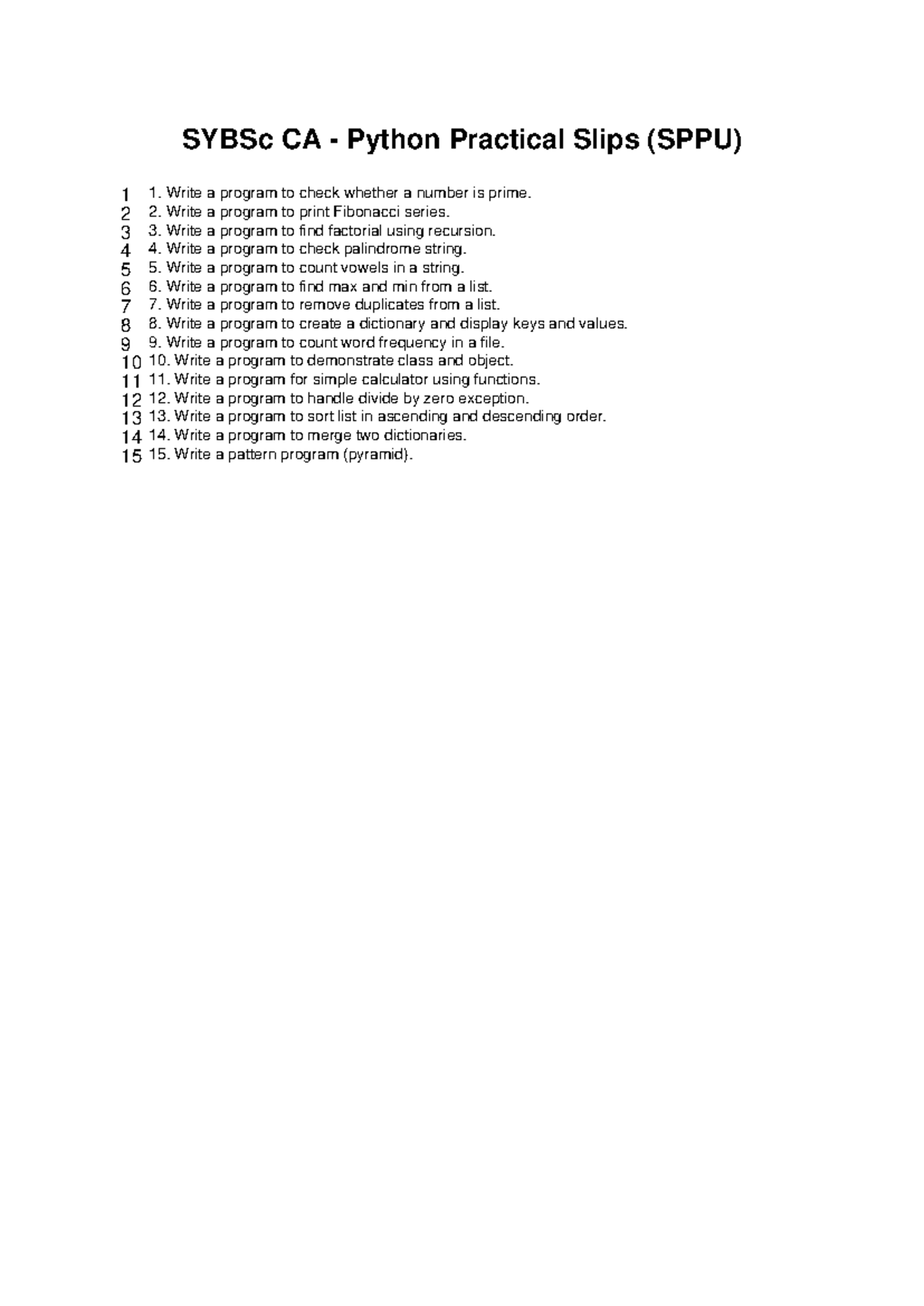 SYBSc CA Python Practical Exercises and Solutions (SPPU) - Studocu