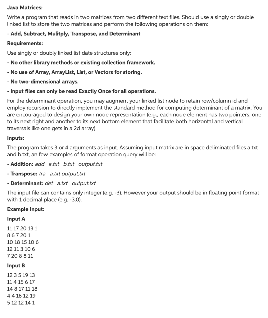 Solved Java Matrices: Write a program that reads in two | Chegg.com