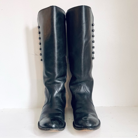 Frye Melissa Button Tall Side Zip Black Leather Ridin… - Gem