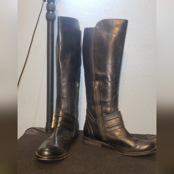 Frye The Melissa Seam Tall Black Leather Harness Ridi… - Gem