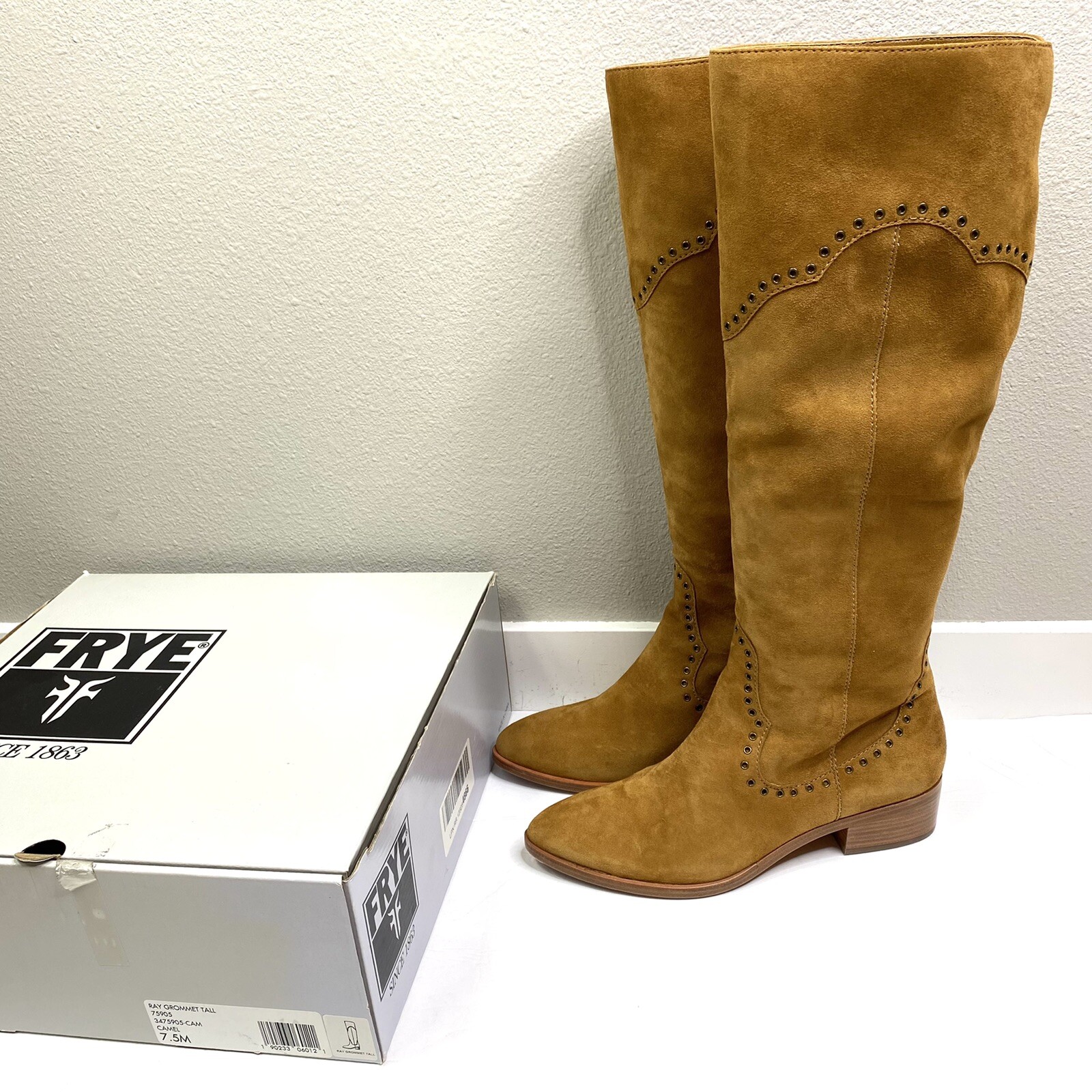 $478 FRYE Boots Ray Grommet Tall Camel Tan Boots Ridi… - Gem