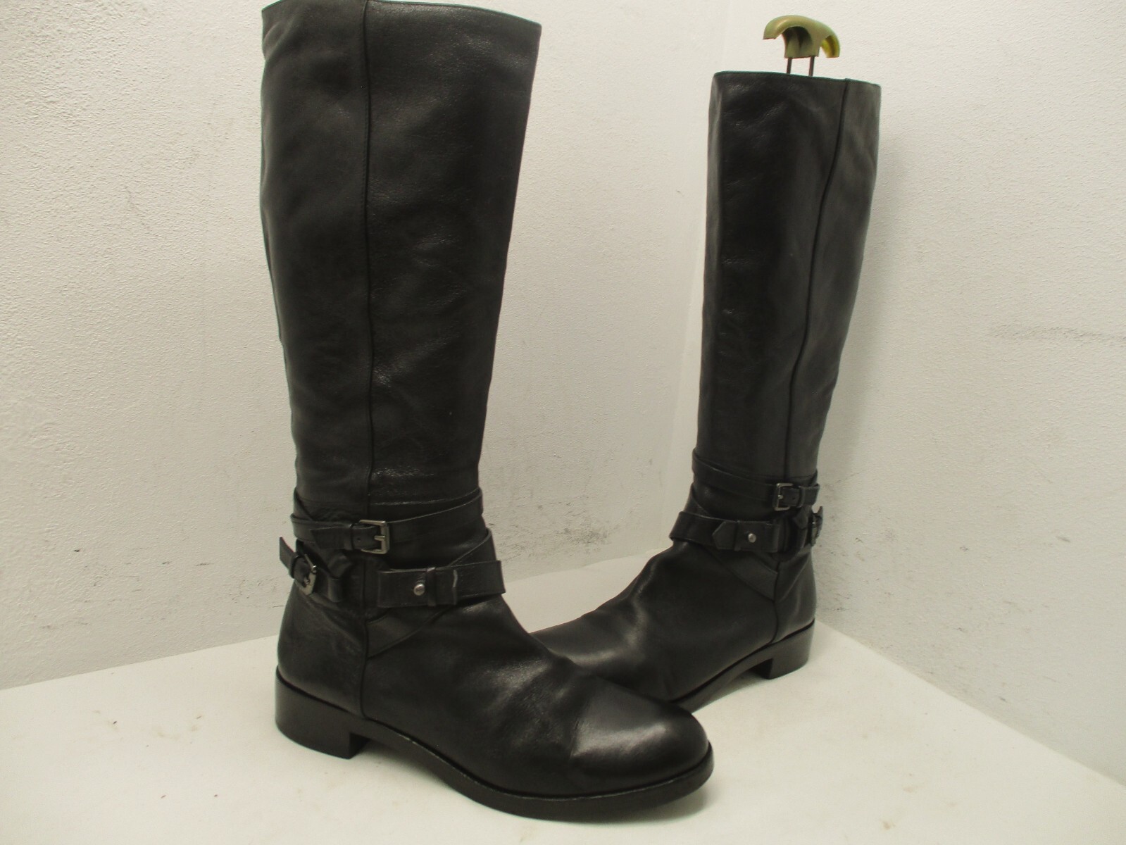 VIA SPIGA Black Leather Half Zip Strap Knee High Ridi… - Gem
