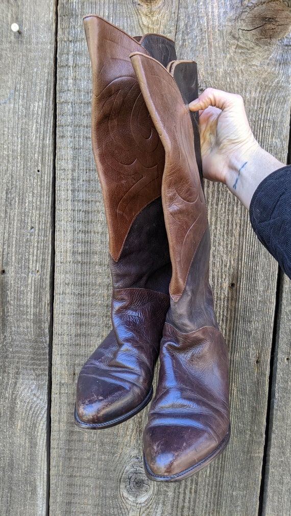 Lucchese | Shoes | Vintage Lucchese Knee High Brown Leather Cowboy ...