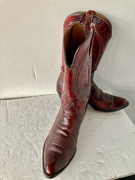 VINTAGE LUCCHESE HANDMADE Cowboy Boots Black Cherry 9D L663064 USA W ...
