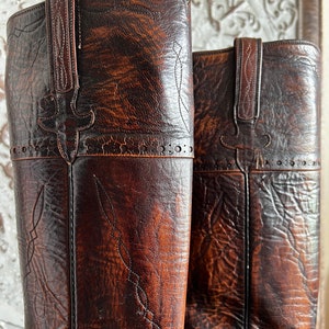 80s vintage tooled leather boots / buttery brown ridi… - Gem