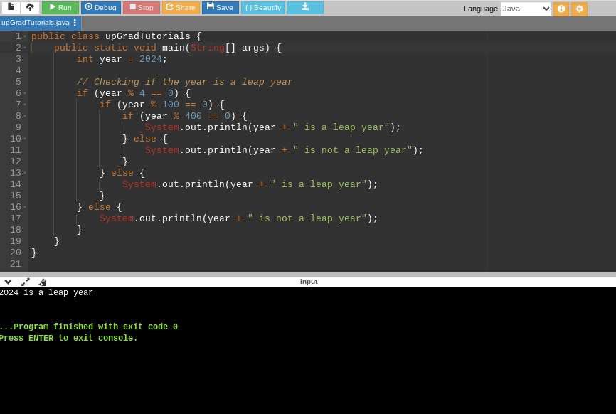 Java Leap Year Code Example | Java programming, Coding lessons, Java ...