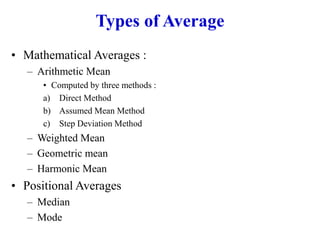 1. MEAN 2. MEDIAN 3. MODE 4. WEIGHTED MEAN 5. QUARTILE, DECILE AND ...
