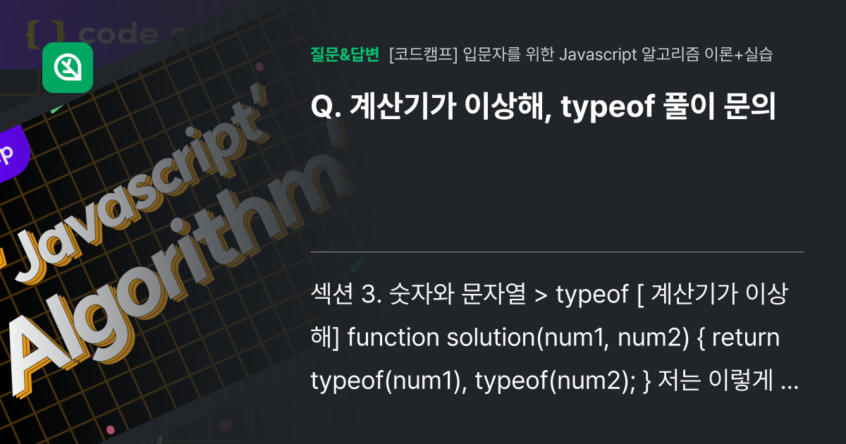 계산기가 이상해, typeof 풀이 문의 - 인프런 | 커뮤니티 질문&답변