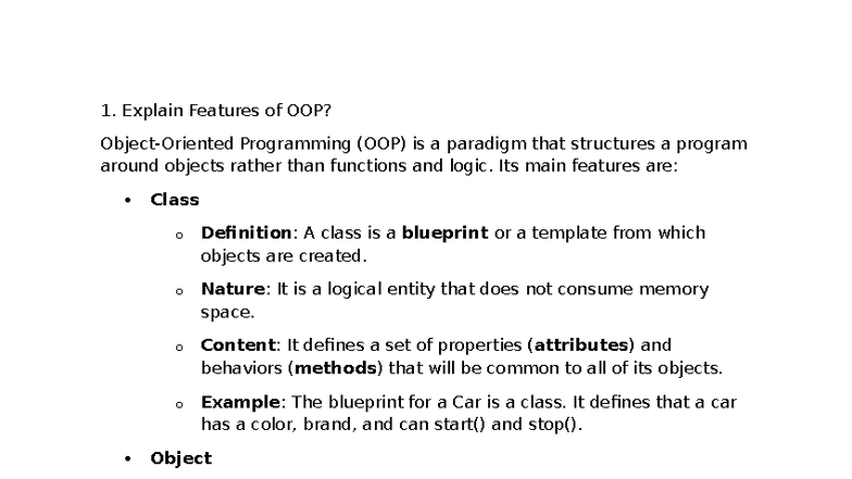 OOP Concepts and Features Explained - Programming (OOP) Notes - Studocu
